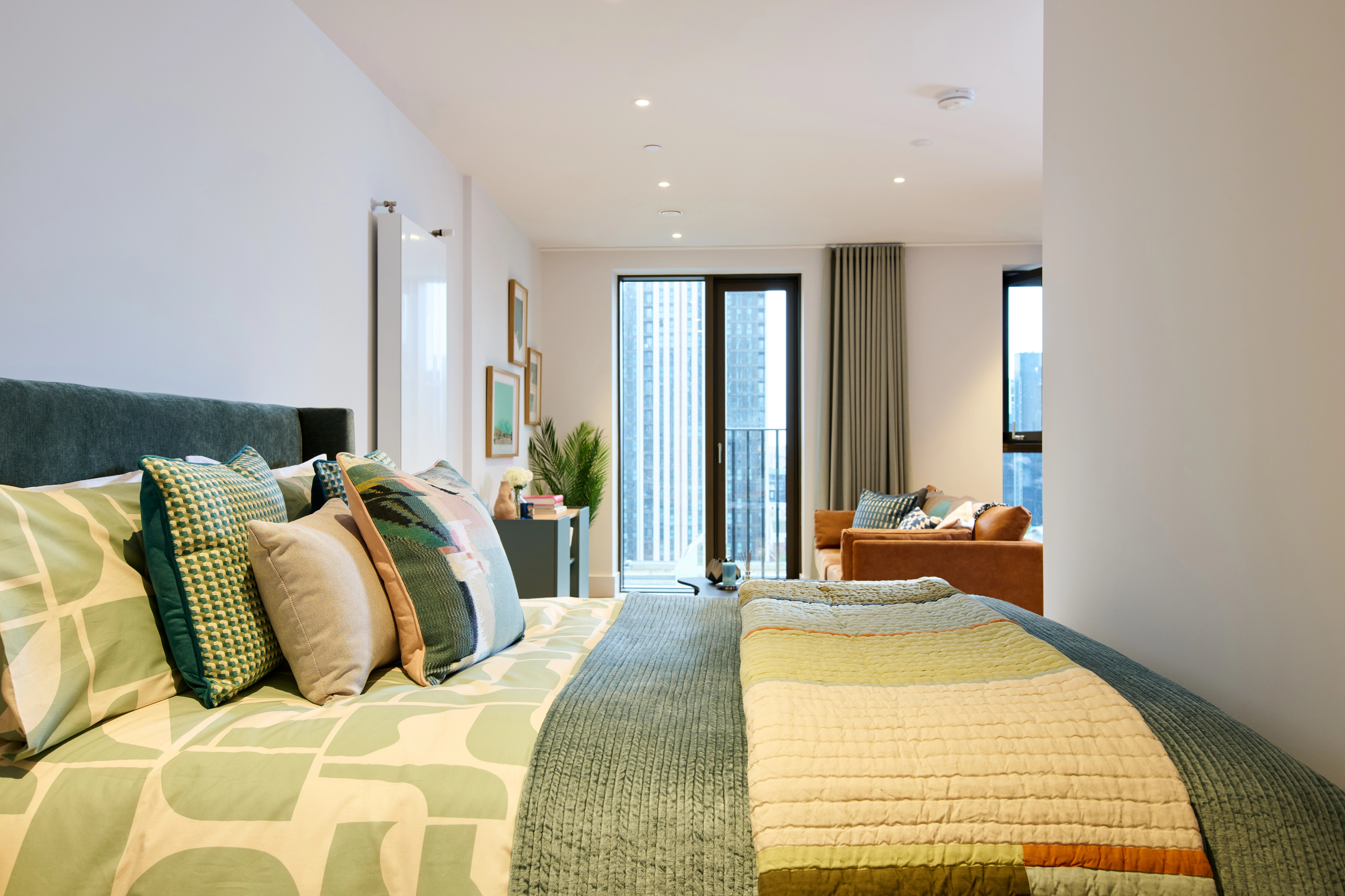 Flooded with natural light and set against the shimmering waters of Wood Wharf, these studios feel bright and inviting.